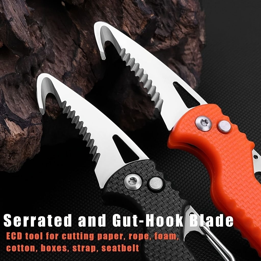 Multitool Keychain Knife; Small Pocket Box/Strap Cutter; Razor Sharp Serrated Blade And Paratrooper Hook; EDC Folding Knives