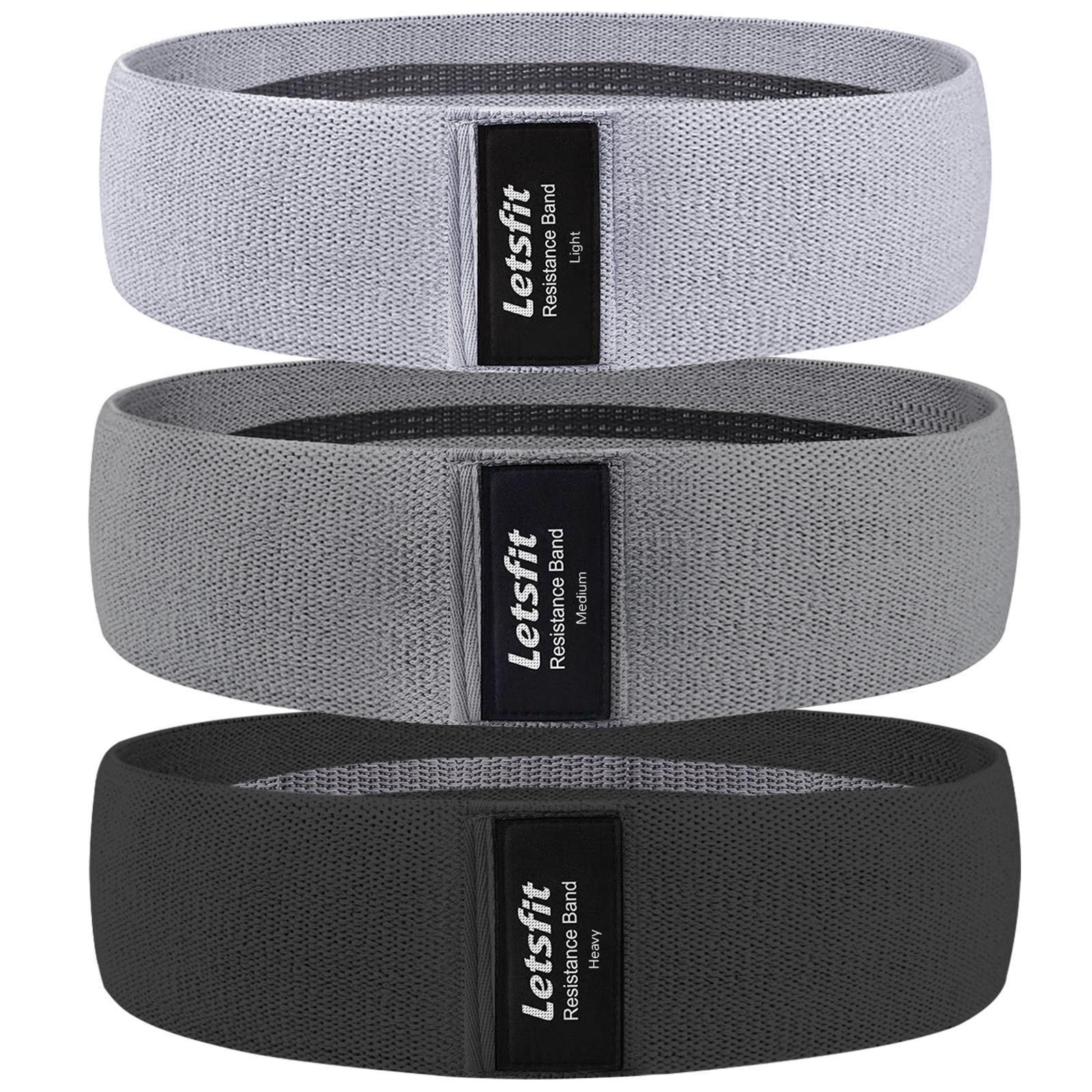 A Set For All Your Workouts: Letsfit workout band set comes in a pack of 3 with different levels of resistance; Heavy (35-50 lbs) in black; Medium (25-35 lbs) in gray; and Light (15-25 lbs) in light gray. You can always have the right band for your different training intensities.